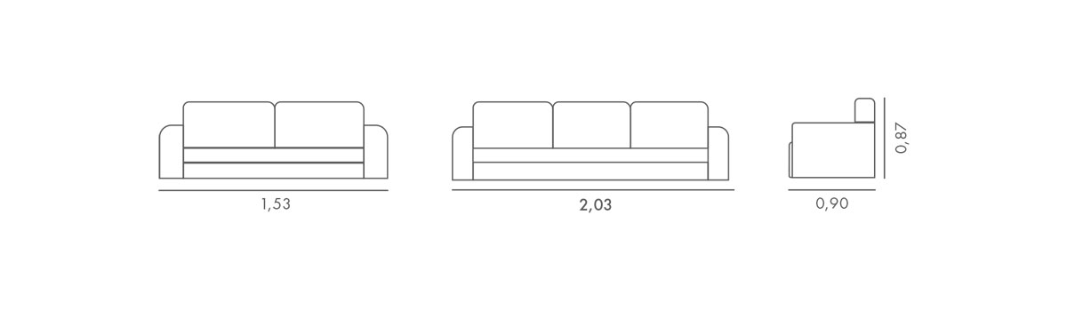 Medidas: Comprimento 3 Lug - 2,03m Comprimento 2 Lug - 1,53m Altura - 0,87m Profundidade - 0,90m