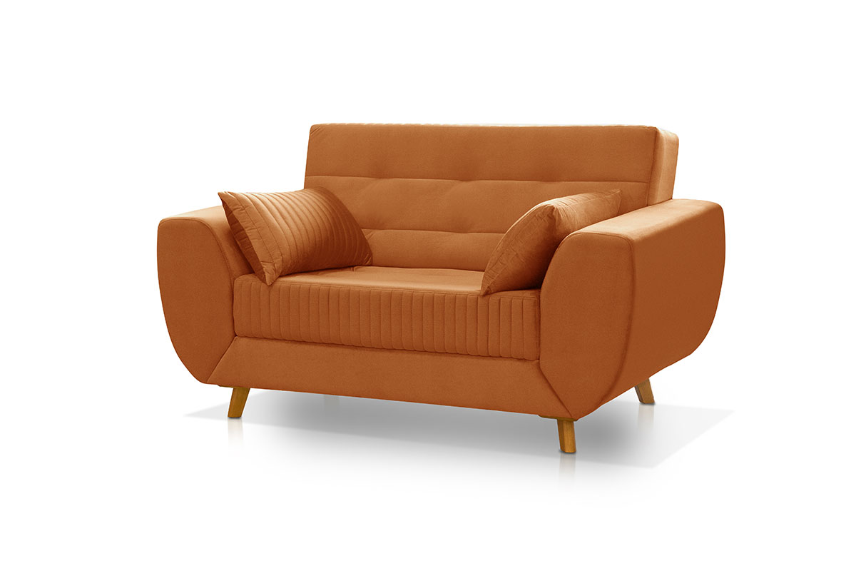 Especificações: Estrutura - Madeira de reflorestamento (eucalipto) Assento - Percintas elásticas e espuma D26 Revestimento - Assento e encosto bordado Almofadas - Fibra Siliconada Pés de madeira Tecido - TVL20
