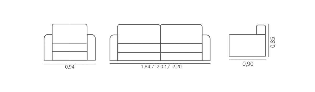 Medidas: Comprimento - 1,84 / 2,02 / 2,20m Comp. Poltrona - 0,94m Altura - 0,85m Profundidade - 0,90m