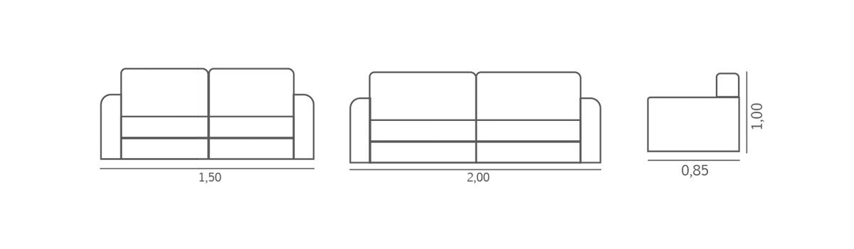Medidas: Comprimento 3 lugares - 2,00m Comprimento 2 lugares - 1,50m Altura - 1,00m Profundidade - 0,85m