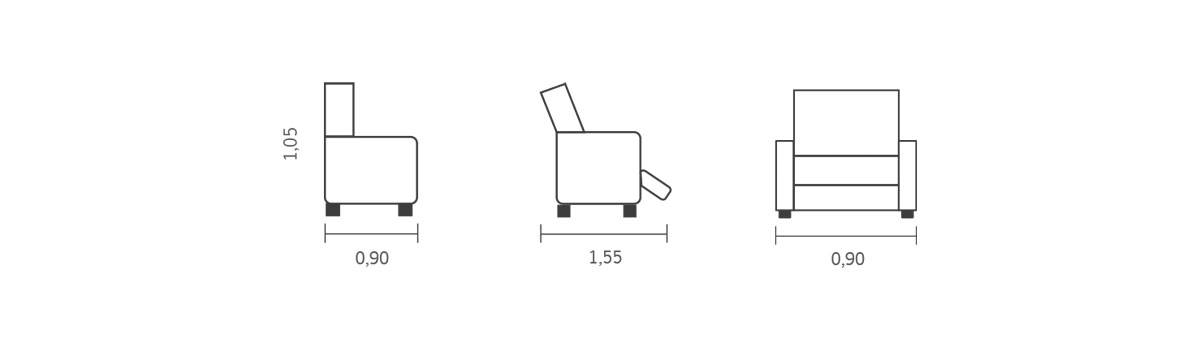 Medidas: CComprimento - 0,90m Altura - 1,05m Prof. Fechado - 0,90m Prof. Aberto - 1,55m Assento: 0,51 comp. x 0,45 prof.